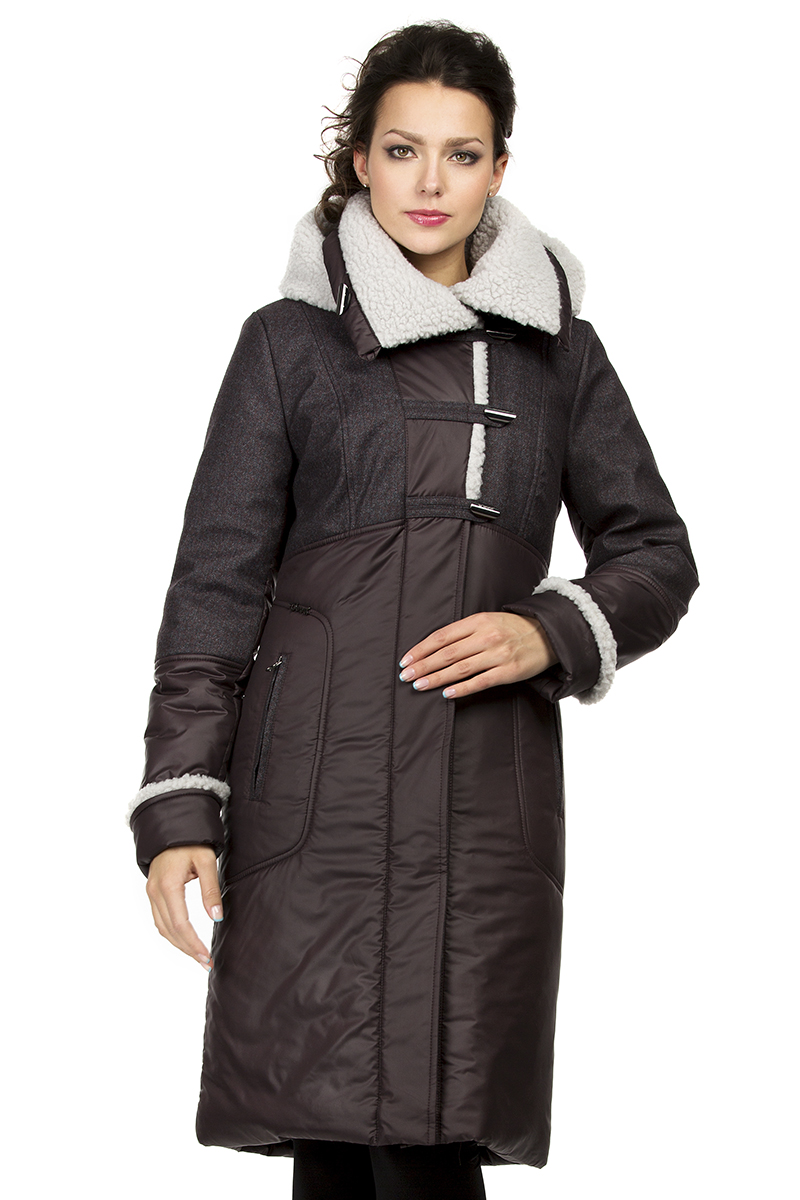 Отделка искусственной овчиной белого цвета и тканью с шерстью в составе.